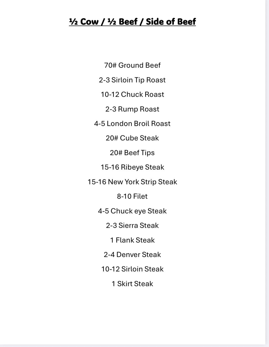 Freezer Space: This 1/2 Beef Share will require approx. 8 cubic ft. of freezer space.